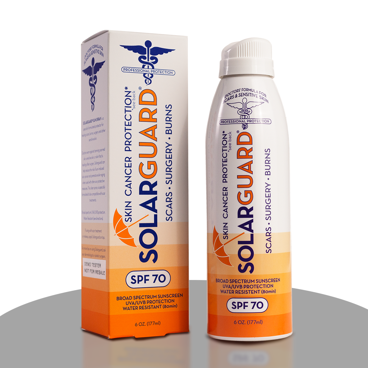 Solarguard is a UVA/UVB, broad-spectrum, water resistant sunscreen that is uniquely formulated to be used with scar treatments and on other sensitive skin areas. It also helps prevent skin cancer*.